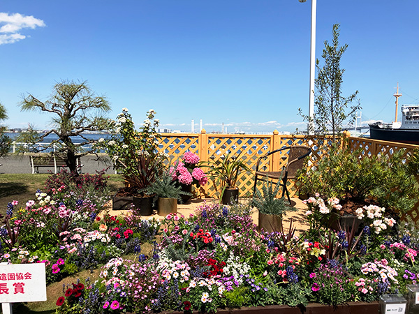 横浜市の山下公園にて5月6日まで花壇展が開催されています。横浜市の造園会社(株)グリーンケア様の展示「オフテリアガーデン」で植物調達とデザインの協力をさせていただきました。横浜市造園協会会長賞を受賞されたそうです。
