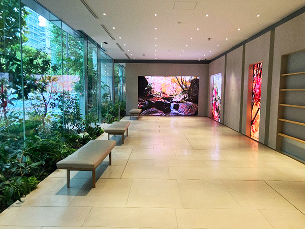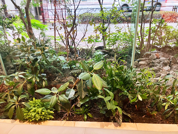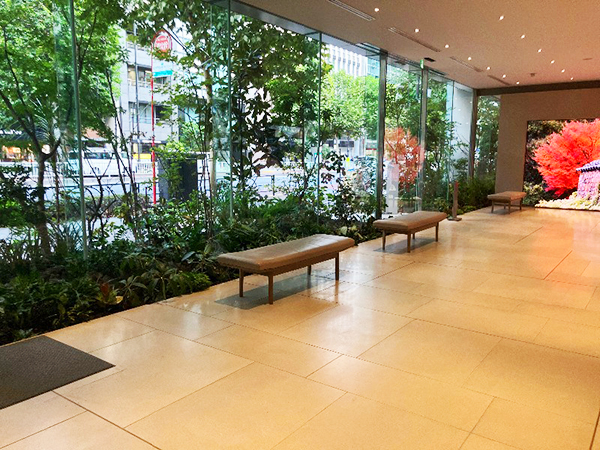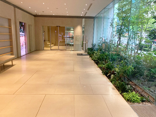 中央日土地ビルマネジメント様のご依頼で、REVZO虎ノ門の1階エントランス内の植栽の植え替え工事をさせていただきました。