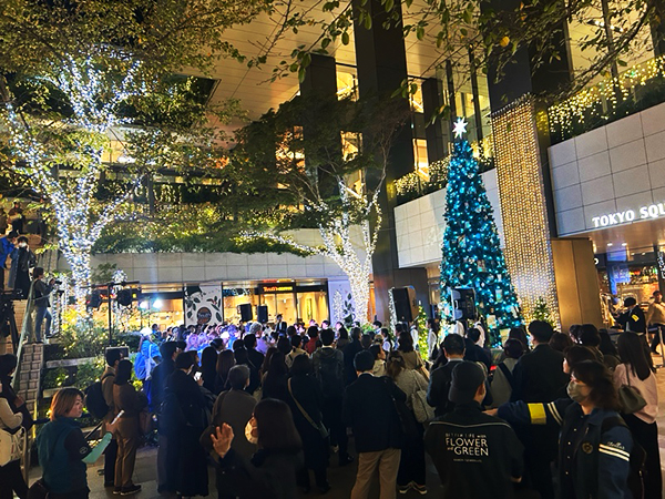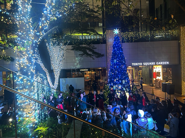 11/6に東京スクエアガーデンのクリスマスイルミネーションの点灯式が行われました。2022年よりアーティストとのコラボレーションによる「アーティストコラボツリー」を制作しています。4回目となる今年のクリスマスツリーは、「When Silence Becomes Light 光とつなぐ、透明のとき」と題し、写真家・国分真央氏がフォトアクリルという素材を用いて制作した写真オーナメントがクリスマスツリーを彩ります。フォトアクリルによって封じ込められた写真たちは、光や時間の移ろい・見る角度によって表情を変え、その都度新たな印象を与えてくれます。建物全体では17万球のイルミネーションとなります。是非京橋まで足を運んでください。