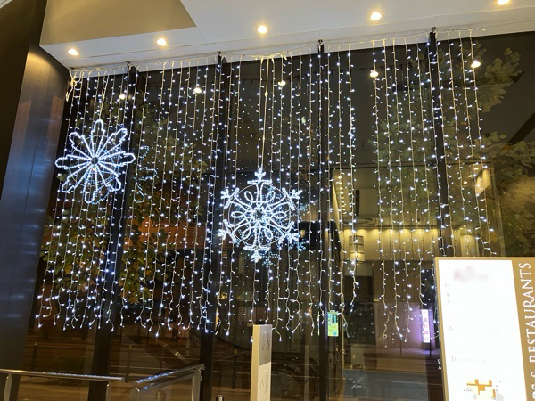 大阪市内にある商業施設にクリスマス装飾をさせていただきました。落ち着いたカラーとデザインで大人の空間を演出しています。