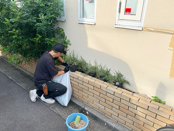 また、外構植栽も同じように刈込みと地被に這い性のローズマリーを補植しました。