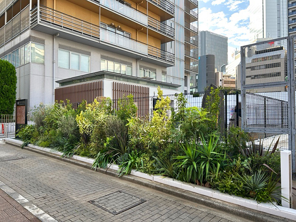 地域にお住いの皆さまに愛された場所との思いから、中木,低木,地被といろいろな種類の植物を植込み、そのにぎやかさを表現してみました。