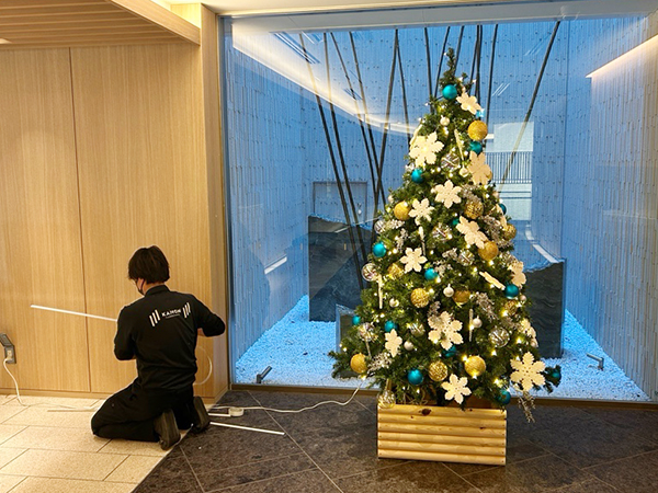 東京・渋谷にあります、外観からしておしゃれなマンションのエントランスへ、クリスマスツリーの設置を行いました。