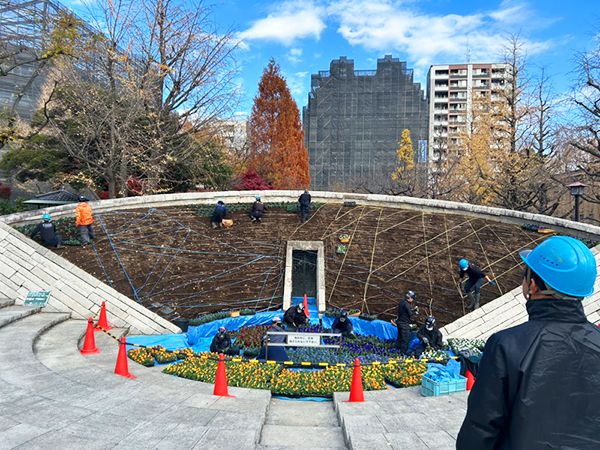 今回は、“東京の景色”という事で、植栽後の花壇を目を細めてみると見えてくる・・・わかりますか?