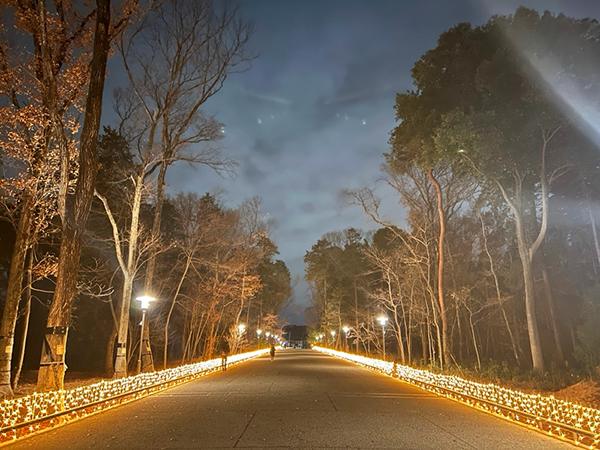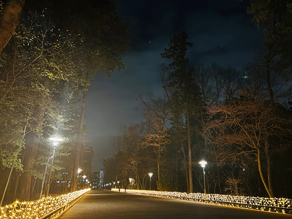 川越にございます、東洋大学様川越キャンパスこもれびの道へ、イルミネーション装飾を施工させていただきました。