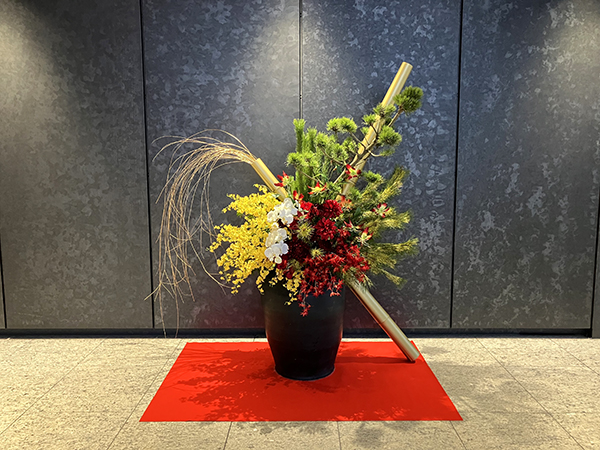 JR横浜タワー様のオフィスエントランスに金竹を使用したお正月装飾を設置させていただきました。