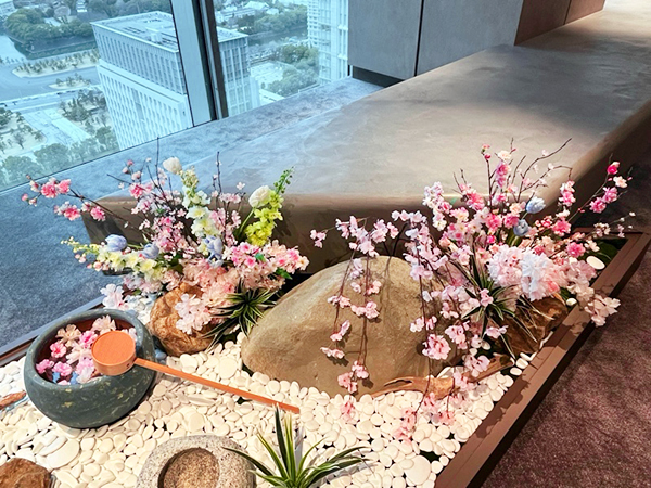 丸の内にあるオフィスのエントランスに桜装飾を施工させて頂きました。