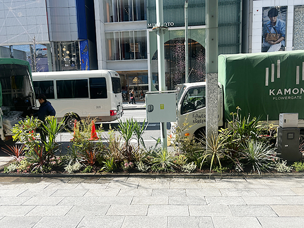 銀座4丁目の東側の3花壇を植え替えをさせて頂きました。