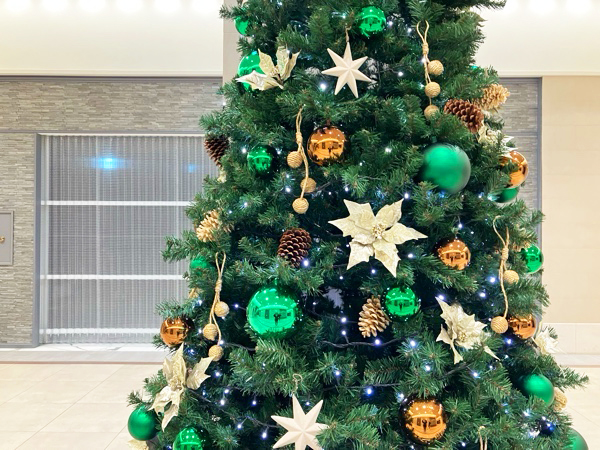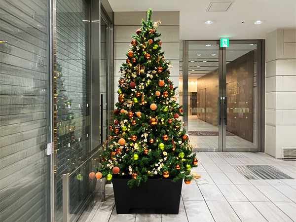 大阪市内にある商業施設にクリスマス装飾をさせていただきました。落ち着いたカラーとデザインで大人の空間を演出しています。