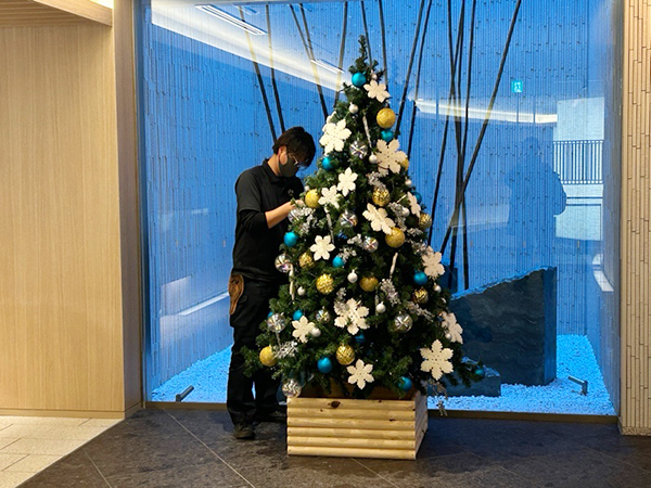 内装は和モダンな感じで、“クリスマスツリーが似合うのだろうか?”と心配になりましたが、そこはさすがにお客様!