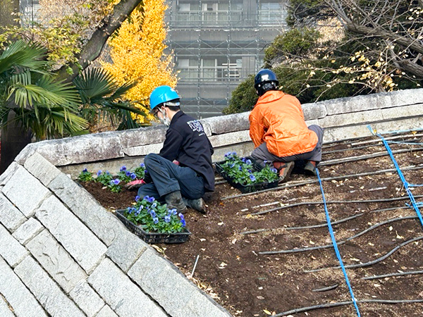 今回は、“東京の景色”という事で、植栽後の花壇を目を細めてみると見えてくる・・・わかりますか?