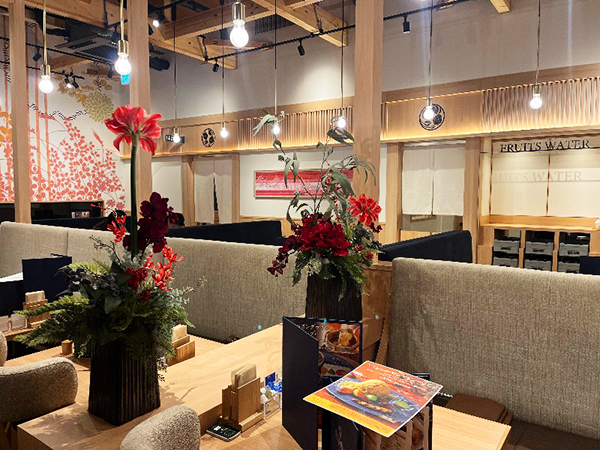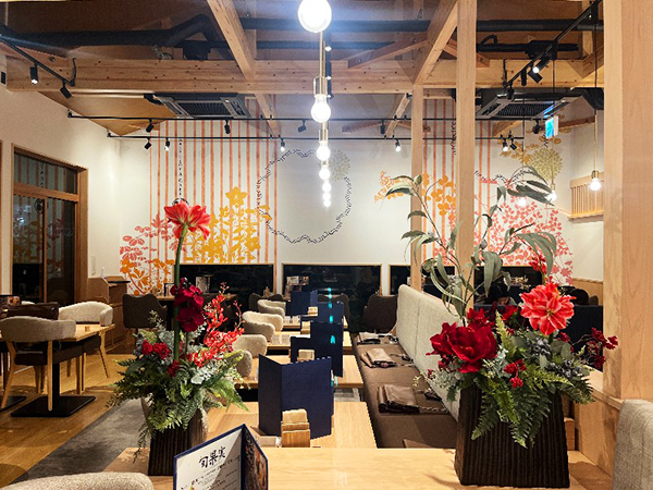 国分寺にございます、果実屋珈琲店様へ季節のアレンジメントをお届けいたしました。