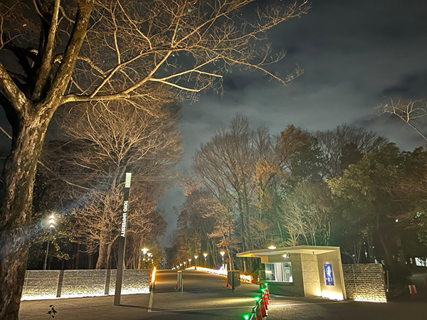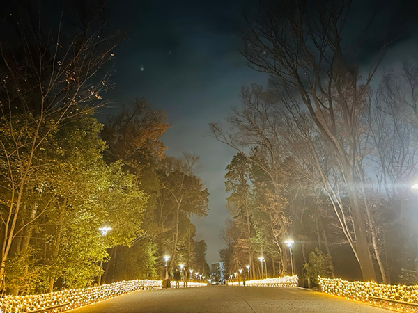 川越にございます、東洋大学様川越キャンパスこもれびの道へ、イルミネーション装飾を施工させていただきました。