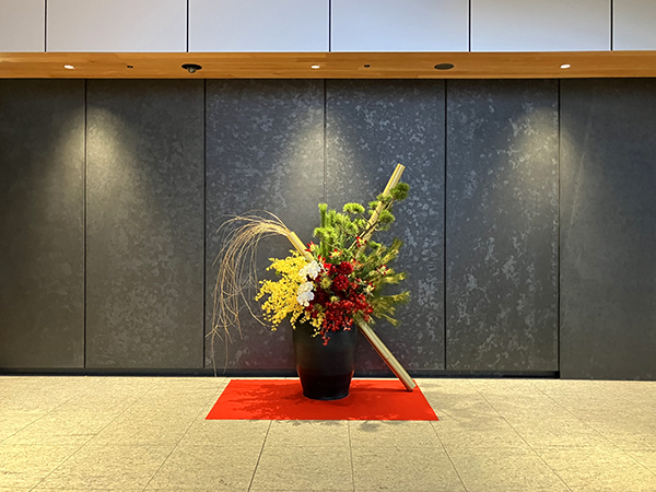 JR横浜タワー様のオフィスエントランスに金竹を使用したお正月装飾を設置させていただきました。