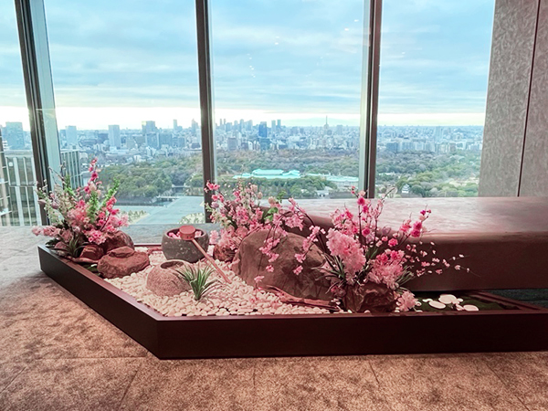 丸の内にあるオフィスのエントランスに桜装飾を施工させて頂きました。