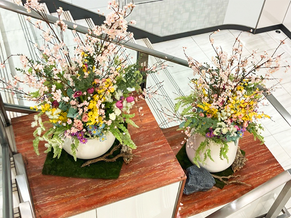 銀座にあります西銀座デパート様の1F階段踊り場に春装飾をさせて頂きました。