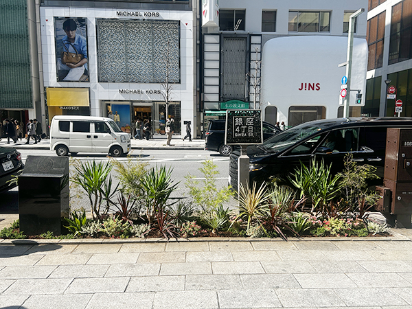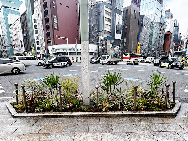 銀座4丁目の東側の3花壇を植え替えをさせて頂きました。