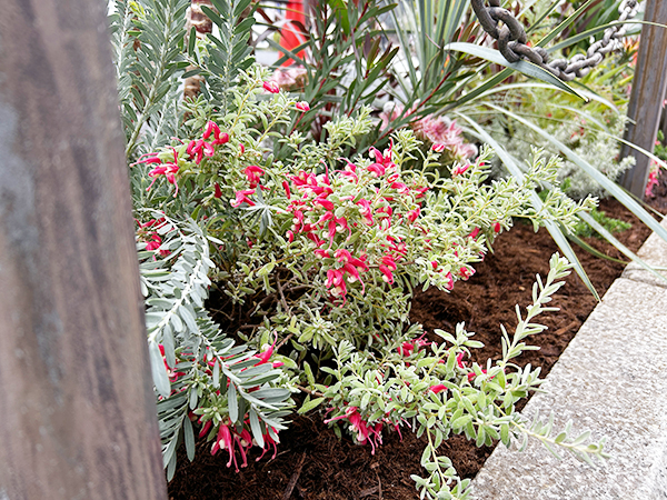 プランニングからさせて頂きまして、夏の酷暑にも負けにくいユッカ等オージープランツを植えさせて頂きました。グレビレア等お花が咲くものも織り交ぜております。
